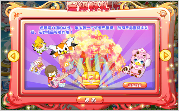 红宝石岛民随着魔力值的成长,每达到一个红宝石星级,都可以开启星级大礼包,无数精品等你来拿哦!