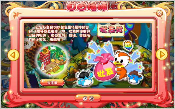 红宝石岛民可以进入专属场景“神秘世界”(位于蔚蓝海岸),批发神秘世界独家出品的服饰,自由定价、摆摊卖给所有的小奥比!