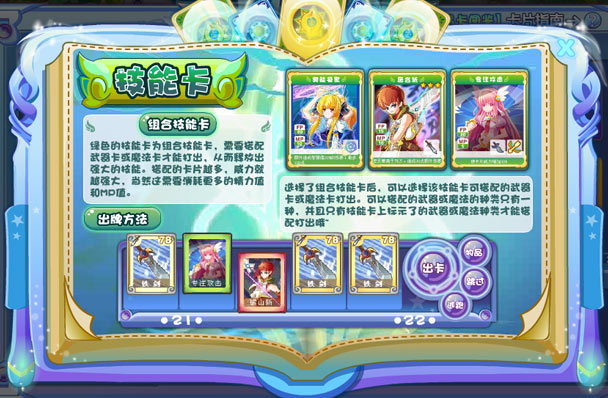 5、绿色的晶卡是组合技能卡,需要搭配魔法卡或者武器卡才能打出。