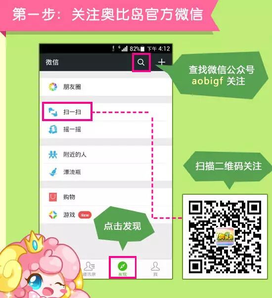 第一步:关注奥比岛官方微信
