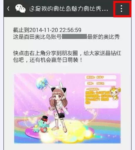 即日起,关注奥比岛官方微信并使用奥比岛账号绑定,只需1分钟,服饰好礼100%免费得!在官网登录奥比岛并到【浪漫花海】,与NPC樱小桃对话,选择“绑定微信得好礼”活动并设置奥比秀,使用微信分享到朋友圈,即可给好朋友派送晶钻红包!活动时间:11月21日--12月10日。