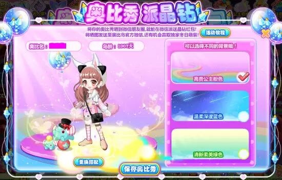 把奥比秀在朋友圈分享的截图发送到奥比岛微信,还有机会赢取独家晶钻纪念套装呢,每天只抽取10名幸运小伙伴哦,马上试试吧!