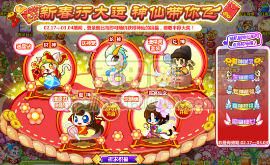 02.17—03.04期间,登录奥比岛即可随机获得神仙的祝福,领取丰厚大奖!