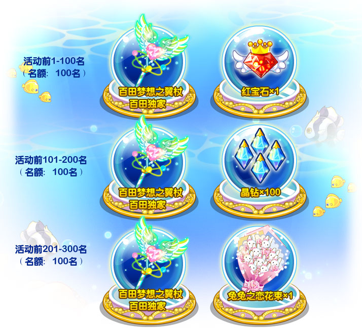 4.8月31日活动结束后,人气榜排名前300名将会获得百田奥比岛樱桃姐姐独家送出以下专属奖励!(奖励将会在活动结束后10天内发放。)