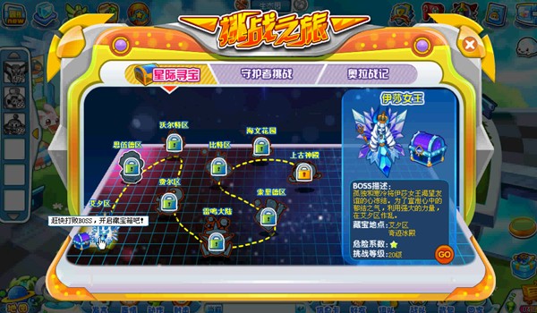 打开挑战之旅-星际寻宝后,可以看到有很多区的BOSS等着我们去挑战。